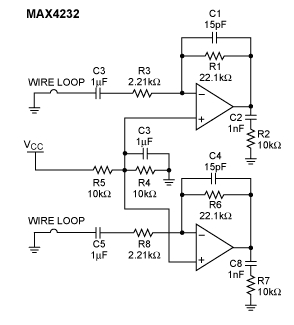 - MAX4232雙運(yùn)放的RF噪聲抑制能力測(cè)試電路