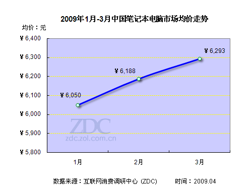 經(jīng)過了幾年的價(jià)格洗禮,如今筆記本已經(jīng)走近了尋常百姓家,再不是高不可攀的奢侈品。根據(jù)ZDC最新的均價(jià)調(diào)查顯示,2009年第一季度,筆記本市場均價(jià)為6000多元。1月份市場均價(jià)為6050元,2月與3月,筆記本市場嚴(yán)重缺貨導(dǎo)致價(jià)格出現(xiàn)上漲,市場均價(jià)在3月份達(dá)到了6293元。