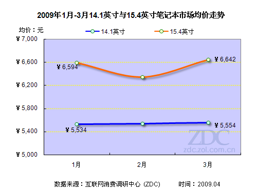ZDC調(diào)查顯示,14.1英寸與15.4英寸產(chǎn)品是第一季度筆記本電腦市場的兩大主流機(jī)型,對(duì)市場價(jià)格變動(dòng)的影響最大。