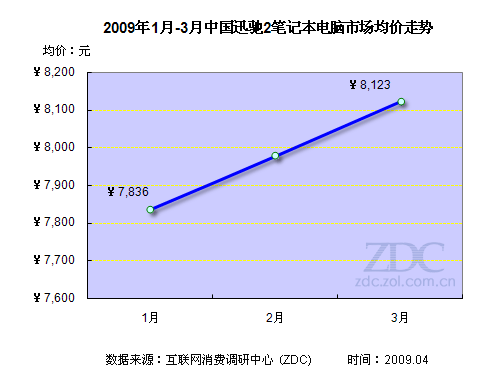 迅馳2筆記本的市場均價(jià)呈現(xiàn)走高的態(tài)勢,從1月7836元上漲至3月8123元。