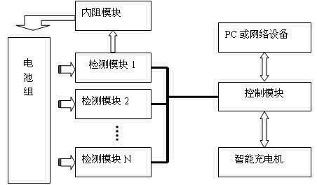 如圖3-1所示,裝置由控制模塊、檢測模塊、內(nèi)阻模塊、相關(guān)軟件和輔助部件構(gòu)成,一個(gè)控制模塊可接入多個(gè)檢測模塊,完成對不同只數(shù)和不同電壓規(guī)格的蓄電池組的監(jiān)測管理,可同時(shí)管理多組蓄電池。