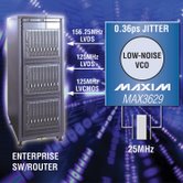 MAX3627和MAX3629具有優(yōu)異的電源噪聲抑制(PSNR),能夠最大程度地減小嘈雜電源對(duì)抖動(dòng)性能的影響,使系統(tǒng)整體抖動(dòng)指標(biāo)的劣化最小,提高系統(tǒng)時(shí)鐘設(shè)計(jì)的質(zhì)量,同時(shí)也節(jié)省了電路板空間和成本。MAX3627/MAX3629可理想用于以太網(wǎng)接口,例如:企業(yè)交換機(jī)、路由器及其它需要低抖動(dòng)以太網(wǎng)時(shí)鐘的高速數(shù)據(jù)通信系統(tǒng)等。