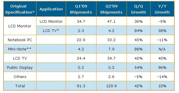 Source:DisplaySearch Quarterly Large-Area TFT LCD Shipment Report