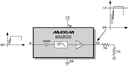 圖3MAX95091.8V應(yīng)用電路處理50%平場信號(hào),大大降低了功耗