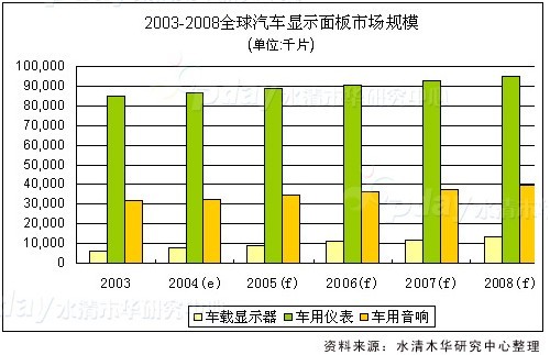 汽車信息系統(tǒng)的復雜性和信息密度在日益上升,這使得汽車內部顯示器不再僅僅是基本的集中儀表顯示,而是要滿足越來越詳細和多樣化的車內信息顯示需求。車載顯示器市場按應用分為車載導航裝置、車載電視,以及車載信息系統(tǒng);按裝配時間分為原裝和后裝兩個市場。原裝市場需要經過嚴格的認證,進入較難;后配市場則不需認證,是目前最大的市場,約是原裝市場的20倍。未來隨著汽車導航系統(tǒng)等成為汽車標配,新車配備顯示器的比例即原裝市場的比例會逐步提升。