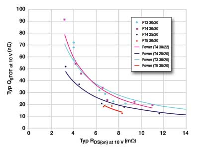 FOM=RDS(ON)×QgRDS(ON)直接與傳導(dǎo)損耗有關(guān),而Qg直接與開關(guān)損耗有關(guān)。FOM越小,性能越好。圖3顯示了低電壓MOSFET工藝發(fā)展中FOM的進(jìn)步。對(duì)于2004年實(shí)施的PowerTrench3而言,最好的FOM是240,而今天的PowerTrench5硅工藝中最好的FOM是126。