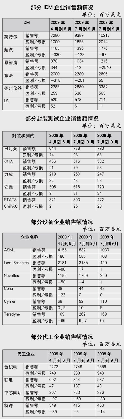 國(guó)際金融危機(jī)重創(chuàng)半導(dǎo)體業(yè)。今年第一季度企業(yè)產(chǎn)能利用率普遍在50%以下。進(jìn)入第二季度后,我們看到部分企業(yè)業(yè)務(wù)止跌回升。近日,企業(yè)第三季度財(cái)報(bào)紛紛出籠,產(chǎn)業(yè)好轉(zhuǎn)趨勢(shì)進(jìn)一步明朗化。但由于企業(yè)上升動(dòng)力不足,產(chǎn)業(yè)出現(xiàn)“V型”反彈的可能性不大,應(yīng)該會(huì)在振蕩中上升。與此同時(shí),今年半導(dǎo)體業(yè)銷售額同比下降約15%的狀況已確定無(wú)疑。業(yè)內(nèi)目前關(guān)注明年產(chǎn)業(yè)上升的幅度。