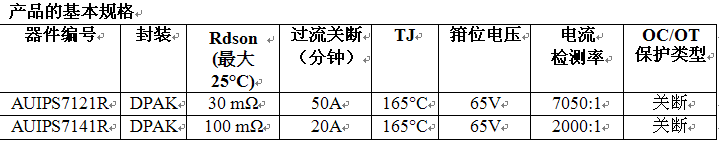 AUIPS7121R 和 AUIPS7141R 提供全面的保護功能,確保開關安全可靠。此外,新器件的過流關斷、過溫關斷和有源箝位電路功能都能確保在重復短路的情況下實現(xiàn)安全運行和保護。