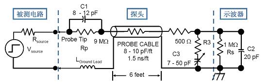 我們可以在探頭中增加一個和示波器輸入阻抗相串聯(lián)的阻抗,用這種辦法就可以減小探頭的負載效應。然而,這就意味著輸入電壓不能完全加到示波器的輸入端,因為我們現(xiàn)在已經(jīng)引入了一個電阻分壓結構。