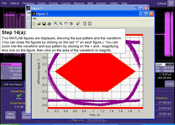 根據(jù)選擇好的測(cè)試項(xiàng)目,QualiPHY隨即展開(kāi)一系列自動(dòng)化測(cè)試過(guò)程:自動(dòng)設(shè)置示波器工作參數(shù)包括采樣率、存儲(chǔ)深度、采集時(shí)間、縱軸刻度、觸發(fā)電平等;自動(dòng)定義測(cè)量參數(shù);自動(dòng)調(diào)用第三方軟件如Matlab對(duì)波形運(yùn)算,自動(dòng)分析波形和測(cè)量結(jié)果,自動(dòng)輸出分析結(jié)果,整個(gè)測(cè)試過(guò)程完全是自動(dòng)化的,無(wú)需任何人工干預(yù)。在測(cè)試過(guò)程中會(huì)同步顯示測(cè)試狀態(tài)和過(guò)程提示。