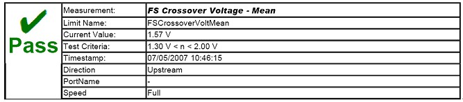 示波器采集波形并按規(guī)程測(cè)量參數(shù)后,QualiPHY軟件會(huì)自動(dòng)將其與標(biāo)準(zhǔn)值做對(duì)比,并輸出此參數(shù)通過(guò)或失敗的結(jié)論。下圖5展示了QualiPHY軟件包對(duì)FS Crossover Voltage - Mean分析的結(jié)果,實(shí)際測(cè)量值為1.57V,USB-IF標(biāo)準(zhǔn)合格范圍是1.30V到2.00V,顯然此參數(shù)測(cè)試通過(guò)。