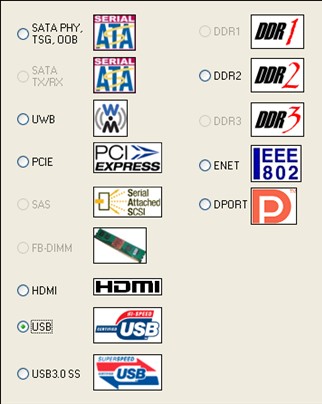 QualiPHY軟件集成了多種串行協(xié)議,不僅支持USB2.0協(xié)議,而支持其他流行的串行協(xié)議諸如SATA、UWB、PCIE、SAS、FBDIMM、HDMI、DDR2、ENET等,如下圖所示。不同的串行協(xié)議采用相同的用戶界面和操作方法,工程師無(wú)需重復(fù)學(xué)習(xí),舉一反三即可快速掌握全部協(xié)議的一致性測(cè)試流程。