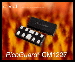 California Micro Devices推出超低電容的ESD器件CM1227,PicoGuard CM1227 ESD器件超低通道輸入電容為0.35pF,適合用于高速數(shù)字消費電子應(yīng)用中。該器件可提供4個通道的±15kV接觸ESD保護,超過了IEC61000-4-2 4級標(biāo)準(zhǔn)。
