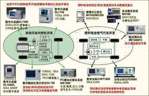 本文針對汽車研發(fā)過程中所涉及到的發(fā)動機分析、驅(qū)動分析、振動分析、環(huán)境影響、燃料電池效率分析、CAN總線分析等方面,介紹橫河電機提供的各種測試解決方案(圖1)。