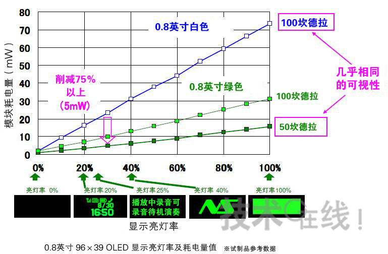 此次開發(fā)的有機EL面板的耗電量“與配備LED背照燈的液晶面板相當”。日本精機首先試制了0.8英寸的綠色面板,與該公司原來同尺寸面板相比,“可視性幾乎相同,耗電量削減了75%”(日本精機)。該公司計劃利用此次的有機EL面板低耗電技術(shù),推動有機EL面板的普及。