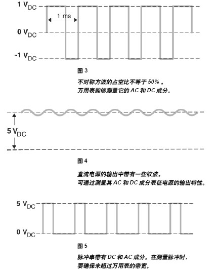 許多信號(hào)包含AC和DC兩種成份。例如不對(duì)稱方波就包含這兩種成份。許多聲頻信號(hào)中也含有由DC偏置電流產(chǎn)生的DC偏移,該電流用于驅(qū)動(dòng)輸出晶體管。有些情況需要測量DC+AC電壓,而另一些情況可能只需要AC成份。對(duì)于這一聲頻例子,放大器增益就是把輸入AC電壓與輸出AC 電壓相比較。