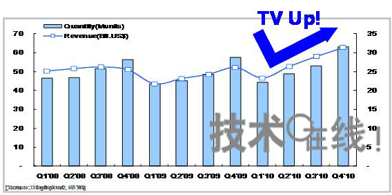 回顧此前電視市場(chǎng)的發(fā)展趨勢(shì),可以作出今后市場(chǎng)的推動(dòng)因素較多,而且比較強(qiáng)的判斷。首先,低迷的經(jīng)濟(jì)形勢(shì)將轉(zhuǎn)向復(fù)蘇,向數(shù)字電視過渡的地區(qū)也會(huì)增加。在中國(guó),目前液晶電視的銷量增加,替代需求不斷擴(kuò)大的地區(qū)很多。并且,還有LED背照燈液晶電視、3D電視及IPTV(internet protocol terevision,網(wǎng)絡(luò)協(xié)議電視)等的紛紛亮相,世界杯足球賽也將于2010年上半年舉行等。