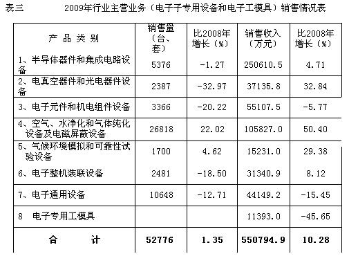 2009年各類電子專用設備和電子專用工模具的銷售情況見表三。