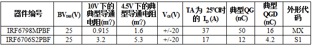 - IRF6706S2PbF小罐D(zhuǎn)irectFET也具備低電荷和低導(dǎo)通電阻