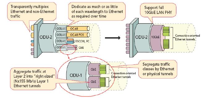圖3.客戶側(cè)匯集的各種協(xié)議使得OTN成為高性價比通用基本結(jié)構(gòu)