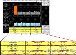 圖7:誤差矢量幅度(EVM)、峰值碼域誤差、頻率誤差、噪聲底電平測(cè)試界面。