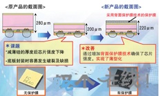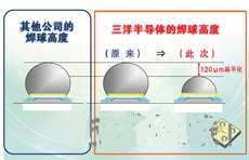 后者的封裝采用了兩項扁平化技術(shù)。一是改變了焊錫球的形狀。從原來的球狀改為了半球狀,高度降低了120μm。第二項是封裝背面的保護(hù)膜技術(shù)。將Si部分的高度比原產(chǎn)品降低80μm,并為確保強(qiáng)度而在背面粘貼了20μm的保護(hù)膜。這減少了60μm的高度。兩項技術(shù)加起來,此次將高度從已有的EFC4601R的550μm降低了33%至370μm。