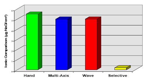 選擇焊只是針對(duì)所需要焊接的點(diǎn)進(jìn)行助焊劑的選擇性噴涂,線(xiàn)路板的清潔度因此大大提高,離子污染量大大降低。助焊劑中的NA+ 離子和CL-離子如果殘留在板子上,時(shí)間一長(zhǎng)會(huì)與空氣中的水分子結(jié)合形成鹽從而腐蝕線(xiàn)路板和焊點(diǎn),最終造成焊點(diǎn)開(kāi)路。因此,傳統(tǒng)的生產(chǎn)方式往往需要對(duì)焊接完的線(xiàn)路板進(jìn)行清潔。而選擇焊則從根本上解決了這一問(wèn)題。
