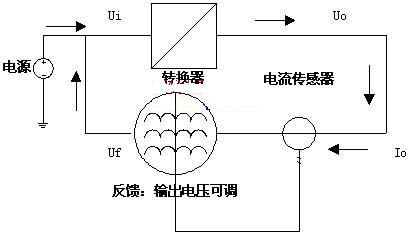 能量反饋部分和需要例行試用的轉(zhuǎn)換器組成一個(gè)能量循環(huán)系統(tǒng),在外電源的激勵(lì)下,系統(tǒng)保持額定功率運(yùn)轉(zhuǎn)。由功率公式P=U*I,U由例行老化的電源轉(zhuǎn)換器穩(wěn)定,要保證該額定功率,就是保證輸出電流I,即能量反饋部分設(shè)計(jì)成恒流電路,所以系統(tǒng)在額定功率下,保證能量循環(huán)穩(wěn)定工作的等效控制量為需要例行使用的電能轉(zhuǎn)換器的輸出電流。