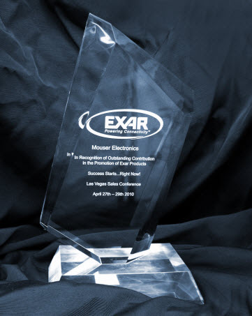 在2010年4月拉斯維加斯召開的Exar銷售大會(huì)上,Exar 為表彰在Exar產(chǎn)品宣傳中的杰出貢獻(xiàn)向Mouser Electronics頒發(fā)杰出貢獻(xiàn)獎(jiǎng)。Mouser獲此殊榮的理由是其成功地在過(guò)去的16個(gè)月內(nèi)保持每月的銷售量都有巨大的增長(zhǎng)。 Mouser同時(shí)還通過(guò)網(wǎng)絡(luò)和目錄營(yíng)銷手段向數(shù)千名新客戶推介Exar的電源管理擴(kuò)展陣列,通信以及接口硅晶解決方案。