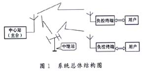 (2)無線通信系統(tǒng),包括架在中心站的天線和用戶處的小型天線以及用于信號轉(zhuǎn)發(fā)的中繼站。