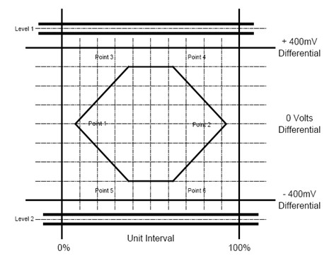 本次測(cè)試將主要驗(yàn)證產(chǎn)品上兩個(gè)USB高速主機(jī)接口的眼圖。對(duì)于USB2.0物理層的眼圖測(cè)試,USB IF在USB2.0 SPEC中有著明確的眼圖模板定義如下: