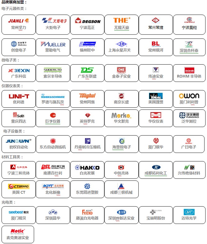 展示范圍:電子元器件、電子材料;制造設(shè)備、測試/測量設(shè)備;汽車電子、航空航天/軍用電子、交通電子、工業(yè)自動化控制;消費(fèi)電子、電腦/網(wǎng)絡(luò)系統(tǒng)及外圍設(shè)備、通信產(chǎn)品/廣電設(shè)備;電力電子、安防電子