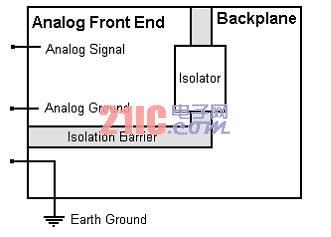 經(jīng)隔離處理的測量系統(tǒng)為模擬前端和系統(tǒng)背板分別提供接地面,以使傳感器測量與系統(tǒng)其他部分相分離。該隔離前端的接地連接是一個可以工作于與大地不同電勢的浮動管腳。圖1展示了一個模擬電壓測量設(shè)備。存在于傳感器地和測量系統(tǒng)地之間的任何共模電壓都會受到抑制。這樣可以防止接地環(huán)路的形成,并剔除傳感器線路上的任何噪聲。