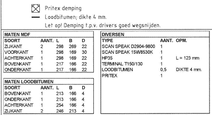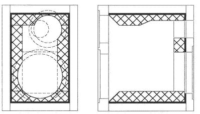 為了避免箱體共振,對兩側(cè)箱板和上、下面板使用22mm厚的中密度纖維板(MDF),前面板則使用30mm厚的MDF。6塊箱板的內(nèi)表面最好全部貼上4mm厚的鉛皮(但較貴),也可貼上相同厚度的瀝青油毛氈進(jìn)行聲阻尼。在箱板開口處應(yīng)仔細(xì)地將阻尼材料剪掉,以免妨礙驅(qū)動單元和出聲管的安裝。