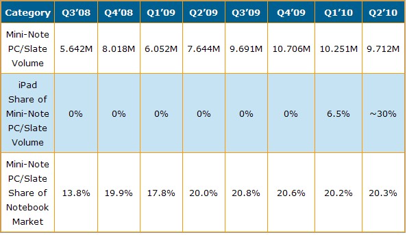 DisplaySearch筆記本電腦市場研究總監(jiān)John F. Jacobs 先生表示,“上網(wǎng)本較大量出貨開始于2007年第四季度,2010年第一季度則標(biāo)示著平板電腦誕生,同時也宣告上網(wǎng)本開始走下坡。Apple已經(jīng)將他們成功的iPhone商業(yè)模式應(yīng)用于iPad,采用Android平臺智能手機(jī)勢必跟隨平板電腦發(fā)展腳步。我們預(yù)期平板電腦消費(fèi)者將可享有利用菜單式點(diǎn)選程序模式的好處,選擇所需功能在設(shè)備上,從而使每一臺平板電腦具備差異化特色。