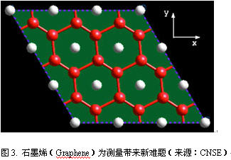 石墨烯是一種穩(wěn)定材料,也是一種禁帶寬度幾乎為零的半金屬/半導(dǎo)體材料。它具有比硅高得多的載流子遷移率(200000cm2/V),在室溫下有微米級(jí)的平均自由程和很長(zhǎng)的相干長(zhǎng)度。因此,石墨烯是納米電路的理想材料,也是驗(yàn)證量子效應(yīng)的理想材料。然而這種材料也非常難以測(cè)量(圖3)。石墨稀顯微鏡是測(cè)量該新材料的必要手段。關(guān)鍵問題之一是單個(gè)樣品和多層樣品中石墨稀的層數(shù)。TEM和低能電子顯微鏡(LEEM)是確定層數(shù)的重要檢測(cè)設(shè)備,多層切片模擬式確定TEM檢測(cè)能力和成像條件的有效方式。LEEM可以檢測(cè)層數(shù)及樣品的形貌。