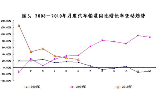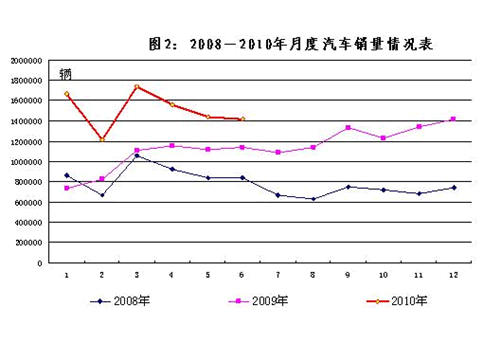 2010年上半年,汽車產(chǎn)銷市場增速自3月以來呈逐月回落態(tài)勢,但總體保持較高增長勢頭;汽車行業(yè)整體經(jīng)濟(jì)效益保持良好的發(fā)展態(tài)勢。