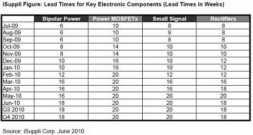 - 雙極功率組件(bipolar Power devices)與整流器的交貨期則為18周