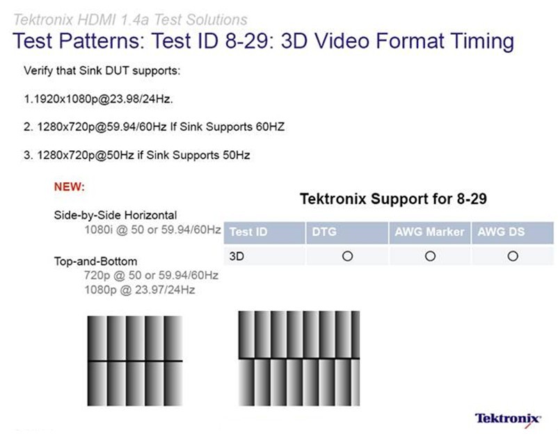 圖5:泰克參與制定了HDMI1.4/1.4a關(guān)于強(qiáng)制3D視頻格式的一致性測試標(biāo)準(zhǔn)。