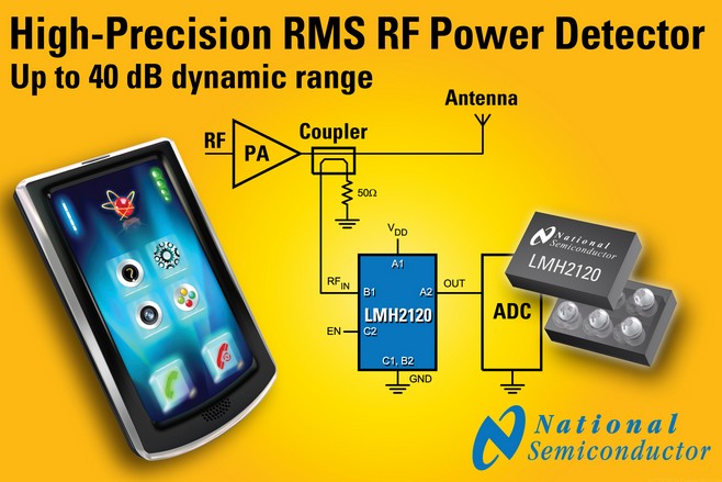 美國(guó)國(guó)家半導(dǎo)體的LMH2120線性均方根射頻檢波器可以準(zhǔn)確測(cè)量射頻功率放大器(PA)的輸出,以便控制發(fā)射功率,避免干擾鄰近信號(hào)。LMH2120芯片可在攝氏-40度至85 度的全溫度范圍內(nèi)穩(wěn)定操作,在1900MHz輸入頻率下,在高達(dá)40dB 的寬動(dòng)態(tài)范圍內(nèi),無論溫度如何變化,該芯片均可保持+/-0.5dB 的準(zhǔn)確度,這令保護(hù)頻帶的范圍可以盡量縮小。該特性可擴(kuò)大信號(hào)的覆蓋范圍并提高服務(wù)水平,如能在離蜂窩基站更遠(yuǎn)的地方實(shí)現(xiàn)更高的上行鏈路數(shù)據(jù)速率。