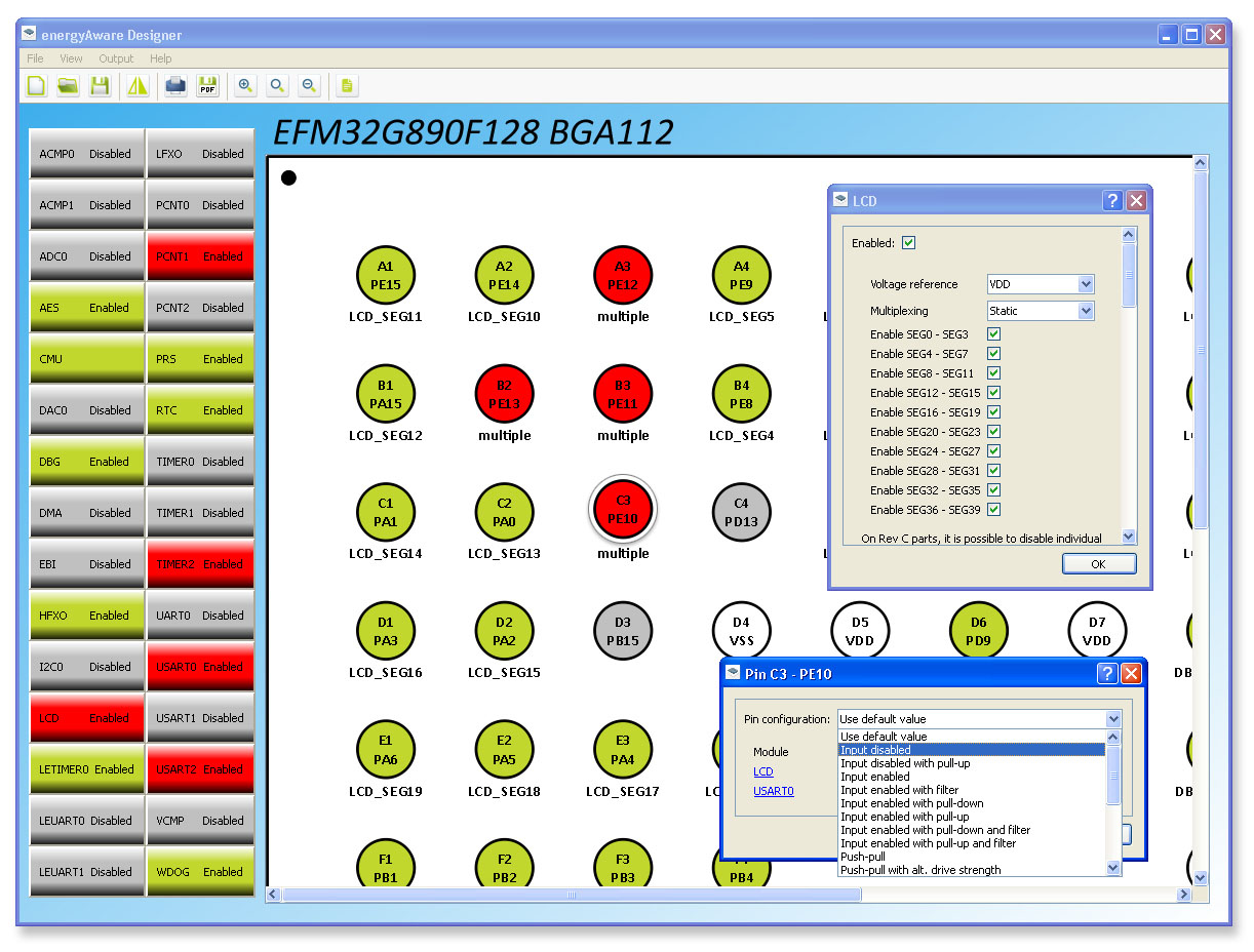 節(jié)能微控制器公司Energy Micro®最近推出了一種免費(fèi)的軟件工具,用以消除調(diào)試I / O引腳沖突時產(chǎn)生的傳統(tǒng)的費(fèi)時問題。energyAware Designer支持完整的EFM32 Gecko低功耗MCU系列,確保正確的引腳配置并自動生成設(shè)置代碼和文檔。