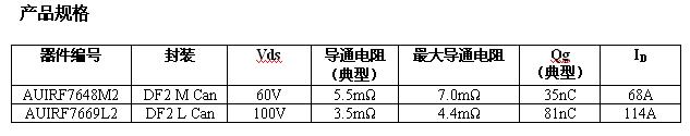 AUIRF7648M2 和 AUIRF7669L2 是 IR為 DC-DC 應(yīng)用量身定制的首款汽車級(jí) DirectFET® 器件,提供低柵級(jí)電荷和導(dǎo)通電阻 (RDS (on) ) ,有助于將各種開關(guān)應(yīng)用的開關(guān)和傳導(dǎo)損耗降至最低。此外,由 DirectFET® 功率封裝提供的低寄生電感可以實(shí)現(xiàn)非常出色的高頻開關(guān)性能,并可減少波形振鈴,從而有助于限制電磁干擾和減小濾波器尺寸。