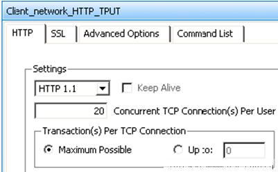 在進(jìn)行吞吐量基線測(cè)試中,一般以HTTP作為應(yīng)用層協(xié)議,為了得到最理想的測(cè)試效果,通過(guò)會(huì)選擇HTTP1.1,每個(gè)TCP連接處理盡量多的HTTP事務(wù)(transacTIon),并且將HTTP載荷設(shè)置較大。圖2是使用IxLoad設(shè)置的例子。