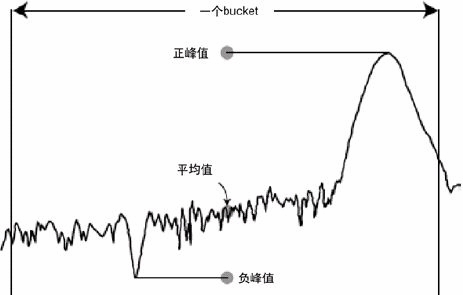 顯示的跡線點通常稱為“bucket”。頻譜分析儀進行數(shù)據(jù)點采樣的時間稱為“bucket間隔”。圖2顯示了選擇不同檢波類型會對給定bucket的顯示跡線點產(chǎn)生什么影響。