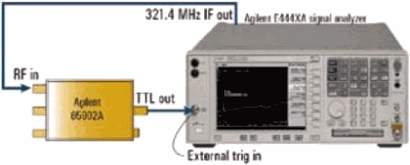 圖6PSA與Agilent85902A猝發(fā)載波觸發(fā)(BCT)集成的外部配置在沒有外部觸發(fā)源的情況下,可使用外部猝發(fā)載波觸發(fā)附件進行可靠的觸發(fā),實現(xiàn)對WiMAX信號的穩(wěn)定測量。圖6顯示了PSA頻譜分析儀與Agilent85092A猝發(fā)載波觸發(fā)(BCT)的集成。在對穩(wěn)定的射頻猝發(fā)脈沖流進行檢波時,BCT會對要分析的射頻輸入信號進行采樣,并提供與猝發(fā)脈沖同步的TTL輸出信號以及一個LED狀態(tài)指標。