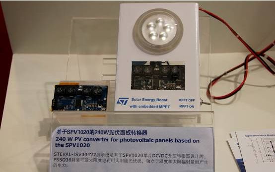 在本次展會上,ST公司展示了基于四相交錯DC/DC轉(zhuǎn)換器SPV1020的240W光伏面板轉(zhuǎn)換器方案,號稱可以將太陽能板的轉(zhuǎn)換效率提高2個百分點。[page]