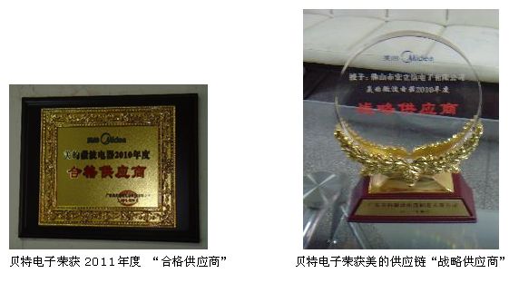 - 貝特榮獲美的微波電器戰(zhàn)略供應(yīng)商及合格供應(yīng)商二項(xiàng)大獎(jiǎng)