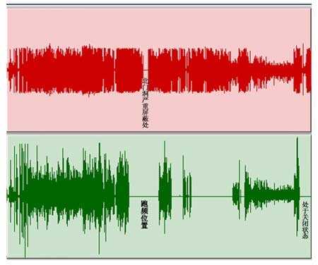 L牌UH2xx在由起點(diǎn)到終點(diǎn)的過程中,于247m處開始跑頻,L牌LMxx在199m處開始跑頻,繼續(xù)前進(jìn)越發(fā)嚴(yán)重,直至接收不到信號。