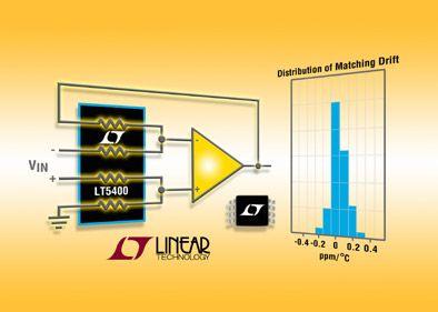 凌力爾特公司(Linear Technology Corporation)推出公司第一個(gè)精確匹配的電阻器網(wǎng)絡(luò)器件系列LT5400,該系列器件為差分放大器、精準(zhǔn)分壓器、基準(zhǔn)和橋式電路中的高性能信號(hào)調(diào)理應(yīng)用而設(shè)計(jì)。三款可選版本已全面投產(chǎn),分別是電阻比率為1:1和10:1的四個(gè)10K電阻、四個(gè)100K電阻和兩個(gè)10K/兩個(gè)100K電阻。每款LT5400系列器件在-40℃至85℃的溫度范圍內(nèi)提供了0.01%的保證匹配準(zhǔn)確度,而在-40℃至125℃則提供 0.0125%。LT5400的匹配性能利用“CMRR 匹配”得以增強(qiáng),這是在采用差分放大器電路配置時(shí)用于保證CMRR性能的一種新度量標(biāo)準(zhǔn)。LT5400的CMRR匹配誤差僅為0.005%,比采用獨(dú)立電阻器時(shí)的0.01%匹配誤差改進(jìn)了2倍。