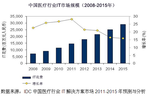 區(qū)域醫(yī)療信息平臺(tái)建設(shè)已逐步成為醫(yī)療信息化發(fā)展的引擎,醫(yī)療信息化市場(chǎng)繼續(xù)高速增長(zhǎng)。根據(jù)IDC最近發(fā)布的報(bào)告《中國(guó)醫(yī)療行業(yè)IT解決方案市場(chǎng)2011-2015年預(yù)測(cè)與分析》,2010年醫(yī)療行業(yè)IT花費(fèi)是114.1億元人民幣,較2009增長(zhǎng)26.7%;預(yù)測(cè)到2015年IT花費(fèi)市場(chǎng)規(guī)模達(dá)到290.2億元,2010至2015年的年復(fù)合增長(zhǎng)率為20.5%。在各類(lèi)醫(yī)療解決方案中,區(qū)域醫(yī)療信息平臺(tái)的增長(zhǎng)最快,2010-2015年復(fù)合增長(zhǎng)率達(dá)24.7%。